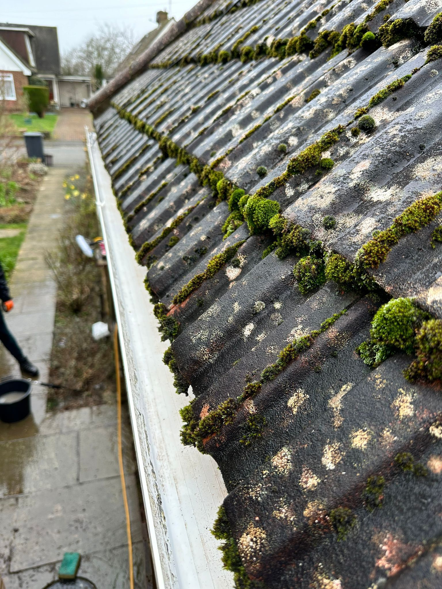 Our gutter cleaners use high-powered gutter vacuum systems to safely clear leaves, moss, and debris from gutters & downpipes - protecting your home from water damage.